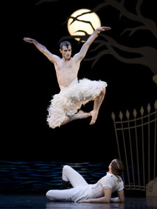 The reality of Mr. Ollivier’s performance is that he met all the needs of MB’s Swan Lake, beautiful, fraught, sexy, sickening, theatrical, tragic, comical… he was mesmerizing throughout. His dancing was big and lush. In the ballroom scene, he practically danced right out of his leather sexypants, ripping the rear end seam! His swan was hostile and angry, moody and melancholy; when he tore through the bed to save the prince, he was equally savage and tragic.