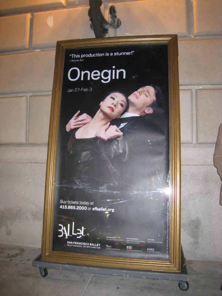 When San Francisco Ballet announced last year that they were going to perform Onegin, I was beside myself with happiness. I love SF Ballet and even though I have never seen the entire production, I knew it was one that should be on my must see list. The Pushkin poem is brilliant and I have to tell you that the story really appeals to me because Tatiana is a wonderful female role. She gives away her heart only to have it broken but she recovers and she grows up and lives happily ever after by her own choices.