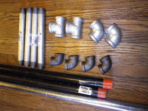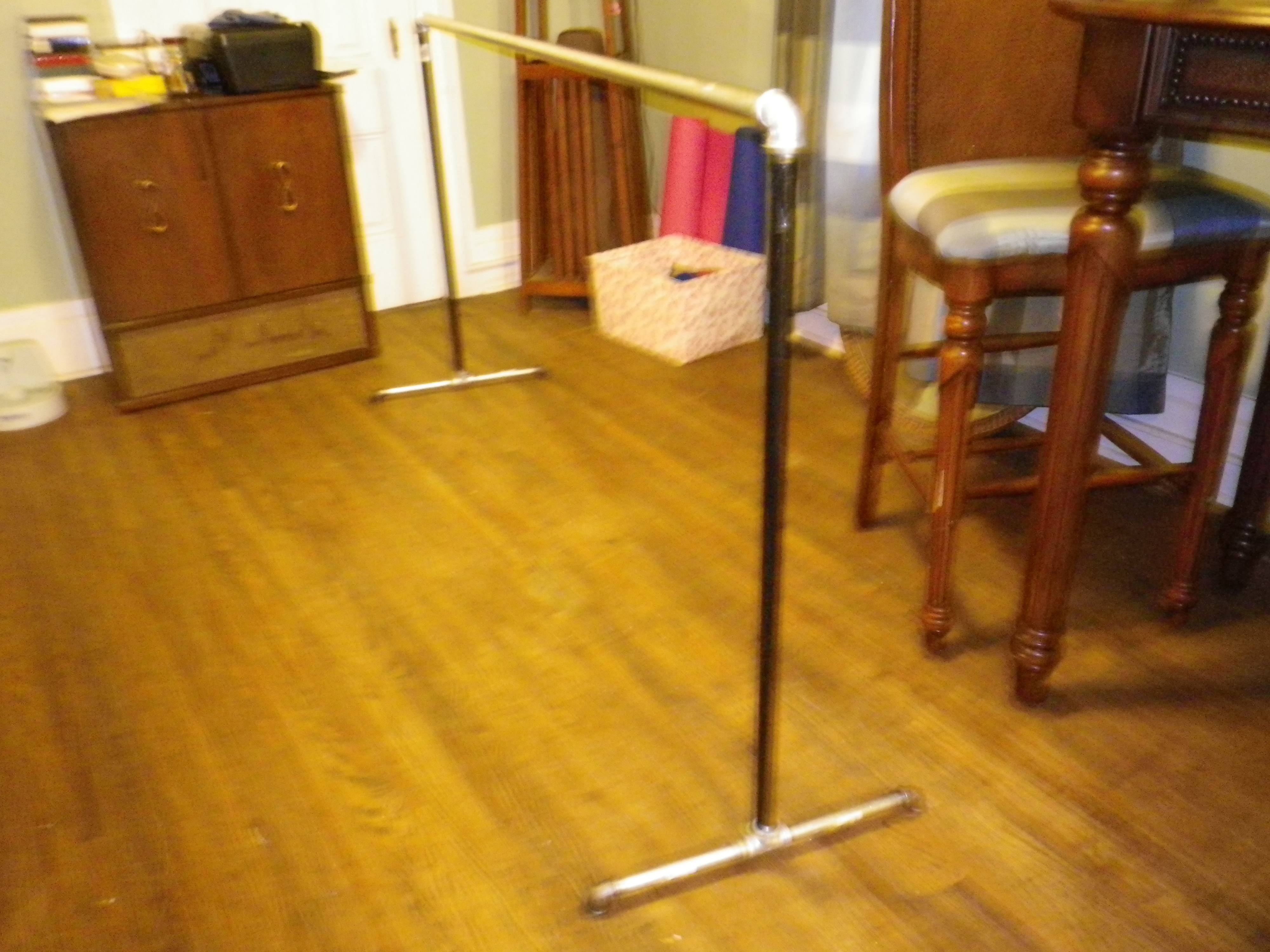 So… despite the tragedy of center in my last class, I decided that I needed a barre at home. Why limit the hilarity of my attempts to dance to public displays of crazy when I could practice my completely laughable moves at home too!!! So Carboy & I hit the hardware store and came home with an armful of galvanized pipe and gas line.