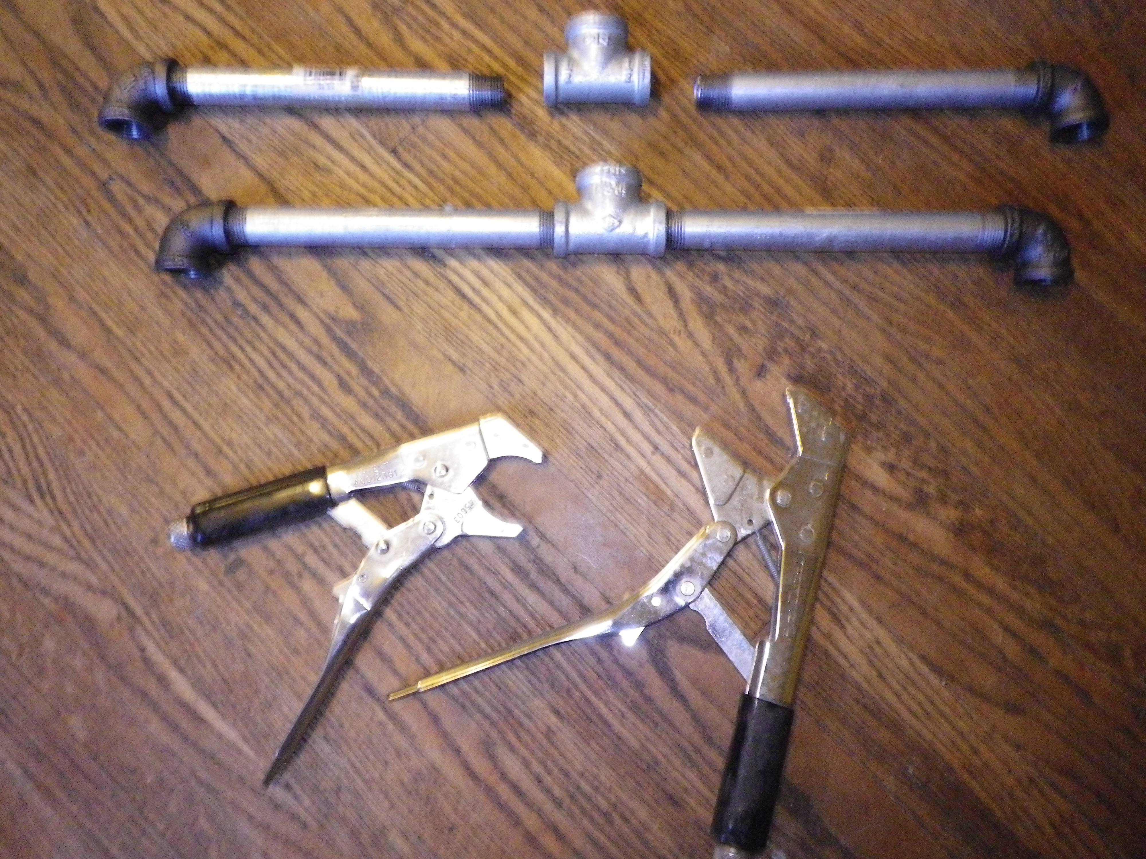 *Note: We discussed using PVC but decided that a small diameter would be too flexible and a large and more stiff diameter would be uncomfortable because I have small hands. We only used a mix of galvanized pipe and gas line because that was what was available in the sizes we needed at the Home Depot. The result is kinda cool looking because my barre is now silver and black in color.