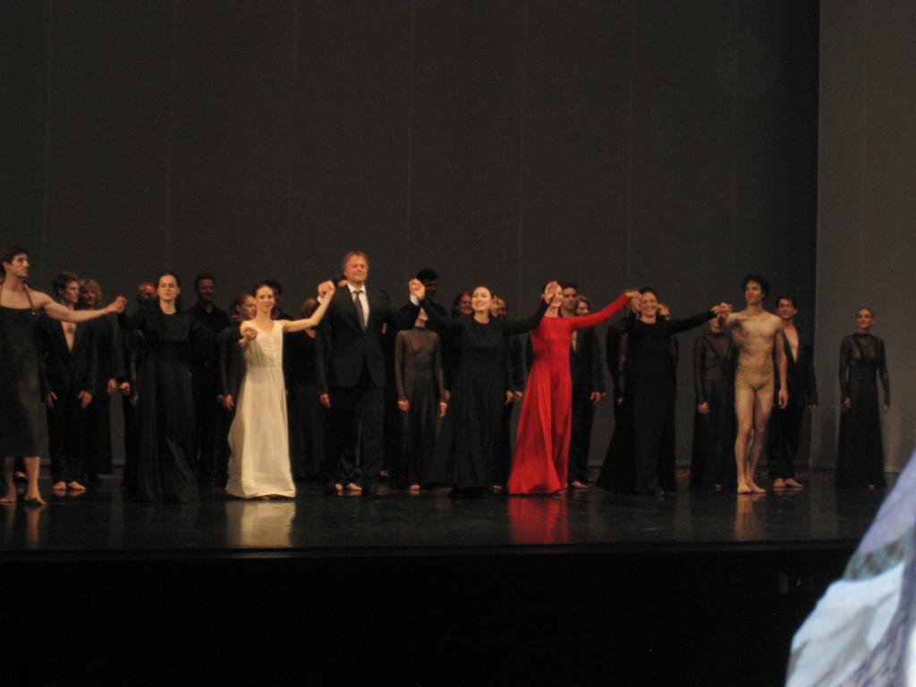 The scenes were gorgeous – modern and symbolic. The lighting was beautiful and rich. The orchestra was wonderful with a full choir in the pit with them. Opera singers sang the roles of Orpheus, Eurydice, and Love while the dancers danced the story. I love opera but I was concerned about how Bausch was going to incorporate the two, opera and ballet, and not muddle the impact and importance of one or both. Well, she did it with such skill, I wish there were more like it. The singers were not static characters to the side but almost ghosts or souls that wandered and gestured and interacted with the story as much as the dancers did.